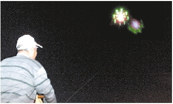 根據(jù)不明飛行物大概的方位,記者跟著“飛行物”方向一路尋找,發(fā)現(xiàn)不明飛行物就在火車頭體育場上空附近,體育場內有人在放夜風箏。原來燈光是夜風箏上夜光設備不斷地發(fā)出不同顏色的光。