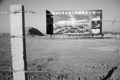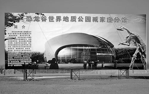 在諸城市政府網(wǎng)站上,關(guān)于最新的招商引資項(xiàng)目中,就有兩個(gè)關(guān)于建設(shè)恐龍化石地質(zhì)公園的項(xiàng)目。在臧家莊發(fā)掘現(xiàn)場(chǎng),一個(gè)蛋殼形狀的場(chǎng)館規(guī)劃圖屹立在發(fā)掘現(xiàn)場(chǎng)。工作人員介紹說,自2008年以來,先后在此出土大量恐龍化石,該化石群規(guī)模之大、品種之多世界罕見,是古生物科考的重大發(fā)現(xiàn)。為保護(hù)好該化石群,諸城市決定在此建設(shè)恐龍谷世界地質(zhì)公園分館。該館外形設(shè)計(jì)為裂開的恐龍蛋殼形狀,寓意新發(fā)現(xiàn)、新收獲、新希望。館內(nèi)展示主要采取底層立體展示、化石平面展覽、 地下化石層隧道展示等,項(xiàng)目占地約100畝,建筑面積3500平方米,總投資2000多萬元,于2008年9月開工建設(shè),計(jì)劃2009年7月1日前建設(shè)并投入運(yùn)營(yíng)。分館建成后,與恐龍谷世界地質(zhì)公園主場(chǎng)館遙相呼應(yīng),形成“一龍一蛋” 的旅游格局!敖ǔ芍蟠蠹揖涂梢皂樦鎏莸降叵拢纯窗l(fā)掘現(xiàn)場(chǎng),看看恐龍化石,這些在不遠(yuǎn)的將來都會(huì)實(shí)現(xiàn)!惫ぷ魅藛T告訴記者。工作人員所說的主場(chǎng)館,就是即將建立在這次發(fā)掘出最大鴨嘴龍化石的庫(kù)溝村村北。在這條東西走向的化石隆起帶上,將建成一座全新的恐龍化石地質(zhì)公園! 這里發(fā)掘的恐龍化石,顏色還真挺特別,紅色、褐色的特別多,可能與這里的土質(zhì)有關(guān)吧!周圍都是紅土。 而在臧家莊那邊,發(fā)掘的化石顏色大都是黑色或者白色。”