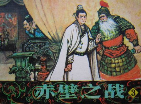 “赤壁之戰(zhàn)”是《三國(guó)志演義》的重要情節(jié)之一,不僅因?yàn)樗侵苯訕?gòu)成“三國(guó)鼎立”的要素,而且直接描述在毛宗崗120回本中占據(jù)了8回之多。事實(shí)上從三國(guó)故事形成以來(lái),有關(guān)“赤壁之戰(zhàn)”的詩(shī)歌便不絕如縷,如盛唐李白“二龍爭(zhēng)戰(zhàn)決雌雄,赤壁樓船掃地空。烈火張?zhí)煺赵坪,周瑜于此破曹公。君去滄江望澄碧,鯨鯢唐突留馀跡。一一書(shū)來(lái)報(bào)故人,我欲因之壯心魄! 如晚唐胡曾“烈火西焚魏帝旗,周郎開(kāi)國(guó)虎爭(zhēng)時(shí)。交兵不假揮長(zhǎng)劍,已挫英雄百萬(wàn)師! 一直到蘇軾前后《赤壁賦》。破曹英雄都鎖定在周瑜身上。