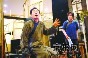 昨天雖然看到的只是該劇第一場(chǎng),但也能從中感受到《龍須溝》的整體風(fēng)格。散文化的敘事方式,使該劇的故事性比較弱,但人物個(gè)性鮮明,它所展現(xiàn)的市井生活具有濃郁的生活氣息。動(dòng)蕩的大環(huán)境下,小人物的悲慘命運(yùn)在家長(zhǎng)里短的敘述中逐一呈現(xiàn),很快就將觀眾帶入規(guī)定情境。雖然只是連排,但看到辛酸處,還是讓不少人都感覺眼眶一熱。人藝藝委會(huì)成員蘇民、鄭榕、朱旭、藍(lán)天野等老藝術(shù)家也前來觀看。藍(lán)天野說,盡管自己50多年前看過老版《龍須溝》,但這次依然被感動(dòng)得三次落淚。