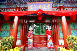 昨日,圓明新園內(nèi)華夏婚俗館正式開館,將向游客免費開放,其中光各式結(jié)婚證、訂婚證就有一百多件。記者現(xiàn)場看到,我國歷史上發(fā)現(xiàn)最早的結(jié)婚證書是太平天國時期的婚書《合揮》的復印件。