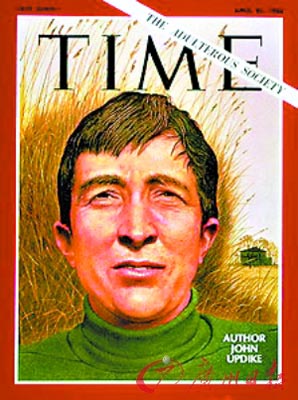 1968 年的小說(shuō)《夫妻們》描寫了小鎮(zhèn)中產(chǎn)階級(jí)家庭組織的換妻派對(duì),令他榮登當(dāng)年4 月26 日《時(shí)代》周刊的封面,大標(biāo)題赫然印著“通奸社會(huì)”(The Adulterous Society)。2005 年他的小說(shuō)《村莊》入圍英國(guó)老牌文學(xué)雜志《文學(xué)評(píng)論》一年一度的“最差性愛描寫?yīng)劇遍L(zhǎng)名單,還好,性愛描寫最終不敵蓋爾斯克倫的《溫克勒》,沒有得獎(jiǎng)。