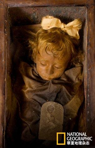 后來的年月里,人們通過壓注化學溶液的方法更好地保存尸體,上帝的這項工作被交接到了制尸工匠和科學家手中。一個禮拜堂里的棺材中長眠著小女孩羅薩莉婭·隆巴爾多,她看起來就像正在臟兮兮的棕色床單下沉睡。羅薩莉婭與其他木乃伊不同,她還有頭發(fā),用一個大大的黃色蝴蝶扎起來,打著卷兒垂在黃色的前額,像布娃娃一樣。她閉著眼睛,睫毛依然絲絲分明,若不是周圍堆著咧著嘴的骷髏、彌漫著腐爛的氣息,她會被錯認為一個在回家的路上打瞌睡的小孩?粗龝氲缴c死的差距只在一息之間,這讓人心神難定,毛骨悚然。羅薩莉婭兩歲的時候染肺炎而死,她的父親傷心欲絕,悲痛之余請來遠近聞名的制尸工匠阿爾弗雷多·薩拉菲亞,讓他把女兒的遺體保存下來。制成后的效果栩栩如生,哀慟之情似乎仍縈繞在那顆頂著金發(fā)的小腦袋上。在巴勒莫,人們把羅薩莉婭視為一個神奇的小天使。出租司機會問:“你看到羅薩莉婭了嗎?可漂亮啦!