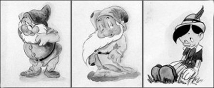 挪威北部一戰(zhàn)爭博物館館長威廉姆·哈克瓦格稱,他是在一個(gè)簽名為希特勒的繪畫作品的背后發(fā)現(xiàn)這些卡通人物像的,他在德國的一個(gè)拍賣會(huì)上買下了那幅希特勒的繪畫作品。他發(fā)現(xiàn)了迪士尼1937年電影《白雪公主》人物“萬事通”和“害羞鬼”的卡通人像圖,圖上有希特勒的簽名,另外一張“匹諾曹”的素描則沒有簽名!捌ブZ曹”曾在一部1940年的迪士尼電影中出現(xiàn)。