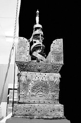 目前,南京方面也已委請宗教界人士選擇吉日開塔,暫未確定開塔時間。阿育王塔出函后,被安放在南京市博物館地下庫房內(nèi)一個特制的密封玻璃罩內(nèi)進(jìn)行過渡性保護(hù)。“新家”保持了和出土地宮內(nèi)相同的溫度和濕度,但由于“塔王”埋藏地下千年,塔內(nèi)木托已經(jīng)部分變形,塔座邊角出現(xiàn)破損縫隙,鑲嵌塔身上的近100顆珠寶發(fā)生散落。由于金棺銀槨遇到水易氧化,骨質(zhì)文物易起霉變,文物專家更擔(dān)心的是出現(xiàn)進(jìn)一步損壞。“不請出金棺銀槨就無法知道它的密封狀況,所以唯一的辦法就是請出,這樣有利于文物保護(hù)!