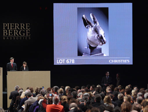 國(guó)家文物局在《表態(tài)》中說,佳士得拍賣行(CHRISTIE’S)已于當(dāng)?shù)貢r(shí)間2月25日在法國(guó)巴黎拍賣了圓明園鼠首和兔首銅像。國(guó)家文物局明確表示: