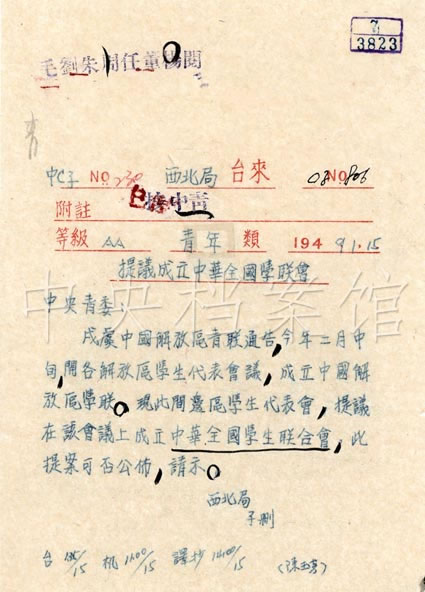 1949年3月1日至6日,中華全國學(xué)生第十四屆代表大會在北平召開。會上正式成立了中華全國學(xué)生聯(lián)合會(簡稱全國學(xué)聯(lián)),討論制定了《中華全國學(xué)生聯(lián)合會章程》,選舉劉希圣等36人組成全國學(xué)聯(lián)執(zhí)行委員會。會議確定了全國學(xué)生聯(lián)合會的任務(wù)是在中國共產(chǎn)黨的領(lǐng)導(dǎo)下,進行愛國主義和共產(chǎn)主義宣傳教育,幫助同學(xué)進步和成長,做黨和政府聯(lián)系同學(xué)的橋梁和紐帶,維護同學(xué)正當(dāng)利益,加強各民族同學(xué)團結(jié),發(fā)展同各國學(xué)生和學(xué)生組織的友誼和合作。全國學(xué)聯(lián)實行團體會員制,全國學(xué)聯(lián)的最高權(quán)力機關(guān)是全國學(xué)聯(lián)代表大會。