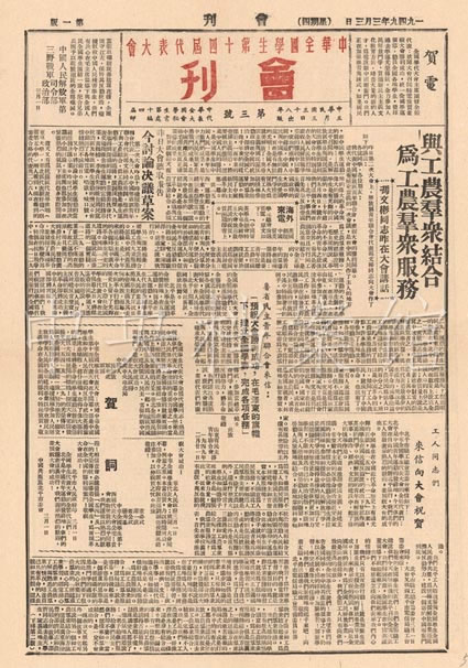 4. 1949年3月3日,中華全國(guó)學(xué)生第十四屆代表大會(huì)會(huì)刊