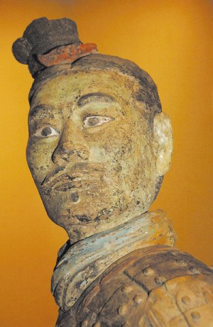 秦兵馬俑中唯一的綠臉俑自從發(fā)現(xiàn)的那一天起,就一直備受關(guān)注。自去年3月27日綠臉俑亮相陜西歷史博物館以來,參觀游客近百萬人,專家學(xué)者、普通觀眾紛紛提出各種疑問和看法,爭論至今還在繼續(xù)。