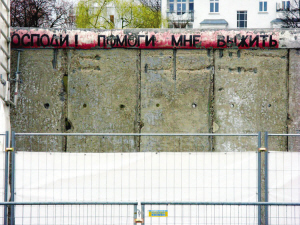 作為目前柏林墻殘余最長的一段,“東區(qū)畫廊”上覆蓋著各式各樣的涂鴉作品。當年,弗魯貝爾和其他117名來自21個國家的藝術(shù)家在1316米長的墻面上留下了涂鴉,他筆下著名的“兄弟之吻”根據(jù)1979年前蘇聯(lián)領(lǐng)導(dǎo)人勃列日涅夫和民主德國戰(zhàn)友埃里!ぐ杭{克會面時的一張照片繪制而成。