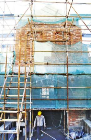 記者昨天在這座紅磚老建筑旁看到,全面包裹的房屋內(nèi),施工人員正對外立面及內(nèi)部部分結(jié)構(gòu)進(jìn)行全面修繕。在一旁的倉庫內(nèi),原本房屋內(nèi)的木雕扶手,護(hù)欄等已經(jīng)被拆下保存,將等到房屋修繕竣工后才重新還原,F(xiàn)場一位施工負(fù)責(zé)人告訴記者:“保護(hù)原始風(fēng)貌,整個建筑將進(jìn)行外墻翻新和內(nèi)部及屋頂天臺等的布局調(diào)整,工程將于今年6月底完工!