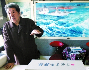時(shí)值海軍成立60周年,78歲的李海濤向本報(bào)展示他40年來所畫的海洋圖,包括《萬國海疆圖》和海軍赴索馬里出征圖。李海濤回憶,曾經(jīng)有一位普通的海軍士兵看完他的畫說:“60年前的我們有海無防,但我們有這么美麗的海,可以來保衛(wèi)它,是一種驕傲!