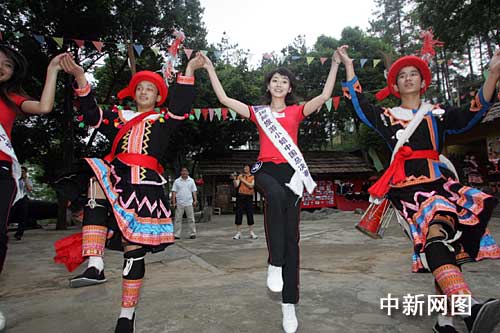 中新網4月26日電 (記者 應妮)在廣東參加2009國際旅游小姐中國區(qū)總決賽的61位選手近日來到連南縣,走進嶺南地區(qū)少數民族——瑤族生活的世界里,探尋和了解瑤族人時代生活的風俗風情。