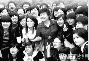 東汽中學的高三年級受災特別重,高三五班43個孩子就剩下18個了。于丹說她見到那十幾個孩子的時候,他們打打鬧鬧、嘻嘻哈哈,特別高興的樣子。等他們坐下來聊天時,聊著聊著,有一個叫唐雯的小女孩,悄悄地跟旁邊的人說了什么,旁邊的人便替她說出來:“她說她想抱抱你!庇诘けё×伺ⅰL砌┖馨察o的把頭伏在她的右肩上,過了一會兒就開始聲音低低地啜泣。于丹輕輕拍著她說:“好孩子,你可要把眼淚流出來,這要是窩在心里就是堰塞湖,如果你不通開它哪兒行啊,你哭出來就好了!彼蛷泥ㄆ㈩澏,到嗚咽,然后聲音越來越大。于丹說她感到自己的衣服從肩膀一直濕到手臂:“她哭了好久。 焙髞,唐雯才慢慢地跟她說起去年自己從教室里被挖出來,到處找不到同學的心慌,說自己不能接受這個現(xiàn)實!昂髞砦也乓庾R到,雖然很多孩子看起來有說有笑的,但是這一幕在她的心里,要過去太難了!”