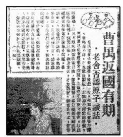至于曹禺,到美之后,時(shí)有信札寄國(guó)內(nèi)友好如佐臨張駿祥等,據(jù)聞在美生活,不甚愜意,遇上問及中國(guó)政治問題,尤為奇窘,最近決定將于年內(nèi)取道返國(guó)。(一知)