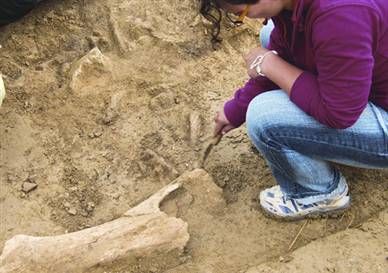 捷克布爾諾(Brno)大學(xué)的斯沃博達(dá)(Svoboda)教授以及他的同事們,于近日在Pavlov VI遺址4英尺寬的燒烤坑附近發(fā)掘出了一只雌性長(zhǎng)毛象和一只未成年長(zhǎng)毛象遺骸。斯沃博達(dá)教授說(shuō):“我們?cè)跓究痈浇l(fā)現(xiàn)了不少用于烘烤的石頭!