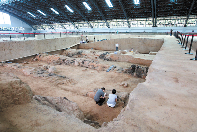 在一號坑內(nèi),6000多兵馬俑全部皆屬“武”類,居然沒有一個是文職人員,難道偌大的軍陣只有“武將”而沒有“軍師”嗎?著名考古學家、半坡遺址發(fā)掘主持人石興邦說,發(fā)掘區(qū)域應該是考古專家們已經(jīng)探測好的,應該會有兵馬俑出現(xiàn),也可能會出現(xiàn)“文官俑”,人們期待著多姿多彩的兵馬俑。