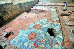 正在發(fā)掘的廣州南越國宮署遺址工地的南漢地層近日發(fā)現(xiàn)了一處大型宮殿遺址,被專家斷定為五代南漢國時(shí)期的宮殿遺址。