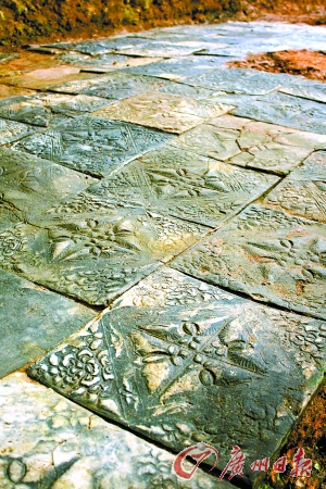 “已發(fā)掘的北面庭院鋪地磚的做工精美,反映了當(dāng)時(shí)高超的工藝水平和獨(dú)特的審美情趣。”李灶新說,這些磚每個(gè)邊長36厘米,表面的菱形方格內(nèi)飾四只飛舞的蝴蝶,邊角飾折枝牡丹!昂砻馈⑿蚊、色美,是美麗吉祥的象征。牡丹,雍容華貴,是富貴的象征。這兩種圖案裝飾的運(yùn)用,體現(xiàn)出當(dāng)時(shí)人們對美好幸福生活的向往和對榮華富貴的追求!