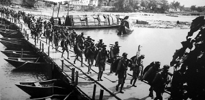 我們從常德出發(fā)正值秋雨季節(jié),雨很大。城里漲大水,部隊(duì)一動(dòng),千軍萬(wàn)馬,過(guò)橋時(shí)擠得不行,有3部汽車(chē)竟給擠到江里去了!大家心痛得不行,汽車(chē)是多金貴的東西。‘(dāng)時(shí)連我們政治部副主任陳長(zhǎng)仁(老紅軍,軍級(jí)干部)都沒(méi)汽車(chē)坐,只能騎馬,能坐汽車(chē)的只有陳錫聯(lián)等少數(shù)首長(zhǎng)。