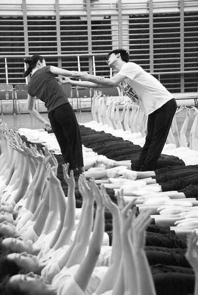 8月19日,為慶祝中華人民共和國(guó)成立60周年而創(chuàng)編的大型音樂(lè)舞蹈史詩(shī)《復(fù)興之路》在北京加緊排列。 中新社發(fā) 富田 攝