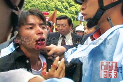 靖國神社內,眾人向神社行禮參拜,突然,一個學生模樣的年輕人沖到前面高呼“反對參拜靖國神社!”他很快被撲倒在地,雙方扭打在一起。終于有人竭力拉開了他們,又有一位老者上前,緊逼著他走了很遠,并不住呵斥:“滾回中國去!滾回中國去!”年輕人一言不發(fā),但這長達幾分鐘的反復呵斥令這些中國觀眾有些難以忍受。一直用攝像機記錄這一過程的李纓當時也急切地想驗明這個年輕人的身份,于是,在旁邊所有人都把這個反對參拜靖國神社的年輕人當作中國人的時候,李纓小心翼翼地問了一句:“是中國人嗎?”“不,我是日本人!