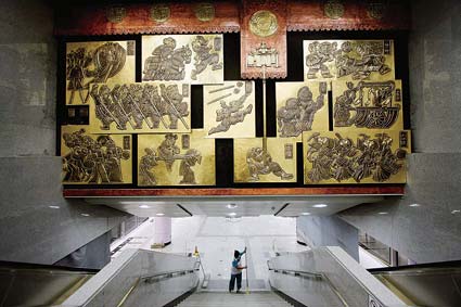 將于9月底通車的地鐵4號(hào)線"鎖定"了8個(gè)重點(diǎn)車站裝飾藝術(shù)壁畫。