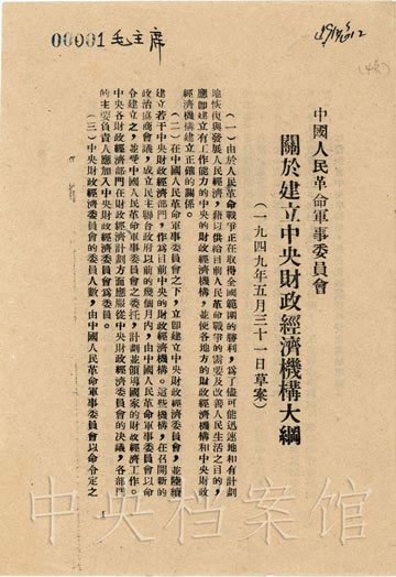 在人民解放戰(zhàn)爭即將在全國范圍勝利的情況下,為了盡可能迅速地、有計劃地恢復(fù)與發(fā)展人民經(jīng)濟(jì),借以供給目前人民革命戰(zhàn)爭的需要及改善人民生活,亟待建立中央的財政經(jīng)濟(jì)機(jī)構(gòu)。