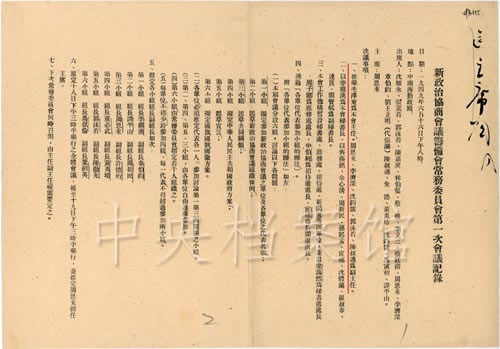 周恩來擔(dān)任臨時主席并致開幕詞。毛澤東、朱德、李濟(jì)深、沈鈞儒、郭沫若、陳叔通、陳嘉庚等先后發(fā)表講話。毛澤東在講話中指出:新的政治協(xié)商會議籌備會的任務(wù)是:完成各項(xiàng)必須的準(zhǔn)備工作,迅速召開新的政治協(xié)商會議,成立民主聯(lián)合政府,以便領(lǐng)導(dǎo)全國人民,以最快的速度肅清國民黨反動派的殘余力量,統(tǒng)一全中國,有系統(tǒng)地和有步驟地在全國范圍內(nèi)進(jìn)行組織的、經(jīng)濟(jì)的、文化的和國防的建設(shè)工作。