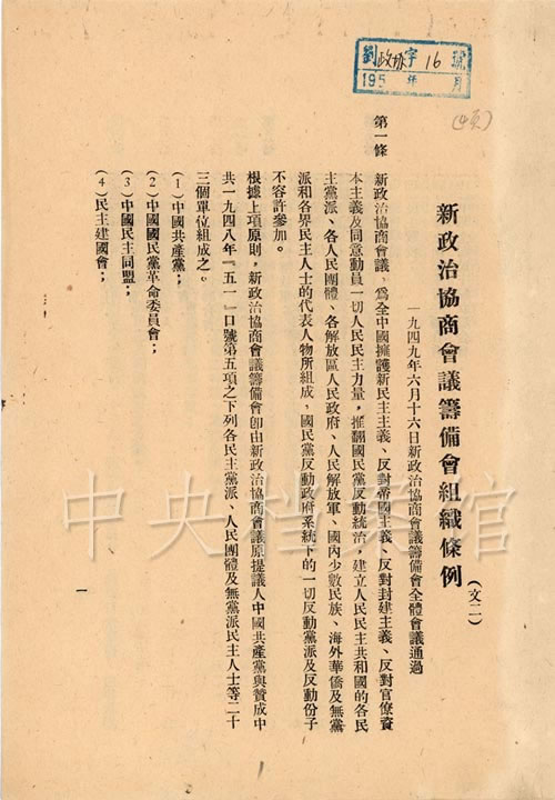 1949年6月15日至19日,新政治協(xié)商會議籌備會第一次全體會議在北平召開。參加這次會議的包括中國共產(chǎn)黨和各民主黨派、無黨派民主人士、各人民團(tuán)體、國內(nèi)少數(shù)民族、海外華僑等 23個單位, 134人。