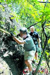 在剛剛結束的對廣東丹霞山進行實地考察評估中,兩位IUCN考察專家格里姆·沃博伊斯博士和禹卿植博士對照申報世界遺產符合的標準、提名地保護管理狀況、當地民眾的支持態(tài)度三個方面進行考察評估。專家還深入無人區(qū)進行實地考察(見左圖),穿越大石寨、大石坳、清風寨、翔龍湖等地了解遺產資源和保護管理情況。他們還到瑤塘新村與當地村民座談,就申報世界遺產的意義和利弊進行了交流詢問。
