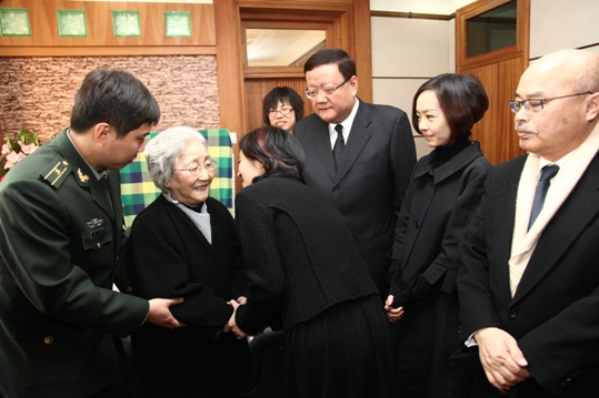 中新網(wǎng)北京11月4日電 今年,在舉辦2008華人盛典頒獎禮、“蔣英師生作品音樂會”的過程中,鳳凰衛(wèi)視作為代表性的華文媒體,與錢學森一家建立了深厚的友誼。10月31日驚聞錢老去世后,鳳凰人一直深深掛念。11月4日,鳳凰衛(wèi)視總裁劉長樂主持人攜陳魯豫、許戈輝、曾子墨及評論員阮次山赴錢學森靈堂吊唁,代表鳳凰衛(wèi)視全體員工向錢老致哀。錢老去世后鮮在媒體露面的夫人蔣英女士,平靜祥和地向前來吊唁的劉長樂一行表示感謝。蔣英老人的身體狀況和精神狀態(tài)尚好,令人放心許多。