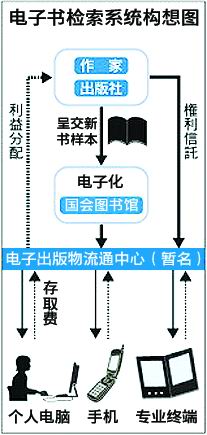 網(wǎng)絡(luò)收費(fèi)圖書檢索的構(gòu)想源自長(zhǎng)尾真館長(zhǎng)發(fā)表于2008年4月的一項(xiàng)個(gè)人設(shè)想,該設(shè)想最大的亮點(diǎn)便是設(shè)立非盈利的第三方機(jī)構(gòu)“電子出版物流通中心”,全面負(fù)責(zé)與作家的作品網(wǎng)絡(luò)發(fā)布有關(guān)的著作權(quán)問題。國(guó)會(huì)圖書館將藏書的電子數(shù)據(jù)無償提供給“電子出版物流通中心”,由該中心以收費(fèi)方式發(fā)送給使用者,隨后將征收到的電子書存取費(fèi)分配給著作權(quán)人。據(jù)悉,該中心的功能非常近似于眼下“日本音樂著作權(quán)協(xié)會(huì)”受詞曲作者委托,向電視臺(tái)等征收著作權(quán)使用費(fèi)。