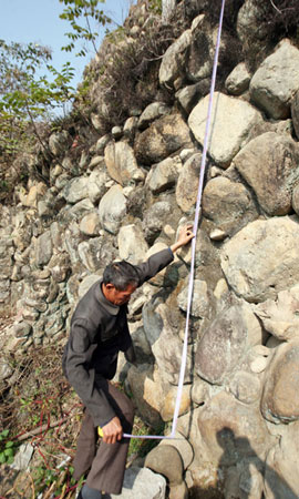 據(jù)介紹,桃園古溪村目前有1500余人,大都姓林,是古堡主人的后裔,“石堡建于明朝中期,有400多年歷史了!74歲的林公開老人告訴記者,400多年前,桃園林氏先祖元佑公從水頭遷來東田桃園古溪,看到這里風景優(yōu)美,就決定在這里定居。 “修建石堡的是元佑公的二兒子林管。”林公開老人說,林管別名“經山”,明朝時期沿海倭寇猖獗,廣有資財?shù)牧止芘麓迩f毀于倭寇之手,就花費家產,經過數(shù)年的時間終于建成了一棟遠近聞名的石堡。 石堡建成后不久,就有倭寇入侵東田,當?shù)厝迦丝谥挥?00余人,包括鄰村的數(shù)百名百姓全部躲進石堡避禍,“里面有糧食,又有水井。”倭寇圍困數(shù)日,使用火攻不但久攻不下,還因為堡內百姓用長矛弓箭反擊,自己反而死傷了不少,倭寇無奈只好退兵。 66歲的林凱老人告訴記者,石堡不但成功抵御了倭寇的進攻,在歷史上還多次防御了土匪,真正起到了保家護鄉(xiāng)的作用。 考古專家劉志成告訴記者,古堡抗倭的說法應該可信度還比較高,明代東田曾出了一個著名的抗倭英雄歐陽深將軍,曾多次在東田、英都一帶與倭寇血戰(zhàn),而當時整個泉州乃至東南沿海都是“倭禍”重災區(qū)。