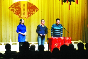 老孟到廣德樓不是來聽相聲的,他沉甸甸的電腦包里裝著一份合作意向,他一手操持的“山寨春晚”有了新進(jìn)展,藝馨相聲社將幫助“山寨春晚”進(jìn)行節(jié)目的整體運(yùn)作,包括語言類節(jié)目的策劃包裝。昨晚,在一段相聲結(jié)束后,老孟和藝馨相聲社的總經(jīng)理孟陽走上舞臺(tái),在200多名觀眾的見證下,孟陽從老孟手里接過了合作意向。頗具戲劇性的是,老孟剛巧站在逗哏的位置,孟陽站在捧哏的一邊,一唱一和,缺一不可,今年的“山寨春晚”有戲了?