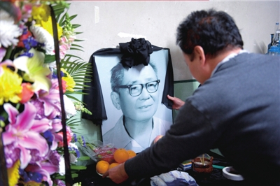 昨天在靈堂前,王秀榮用父親生前最喜歡的口琴給老人吹奏《送情郎》。悠揚(yáng)的口琴聲響起時(shí),老人的子女頓時(shí)哭聲一片,“這節(jié)奏太熟悉了,我覺得我爸沒走”,大女兒王秀英說(shuō)。(記者于杰)