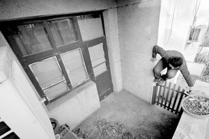 記者看到,陽臺和樓道內(nèi)的屋門已鎖。陽臺上破損的窗戶尚未修復(fù),仍保留著警方勘察現(xiàn)場時所貼的標(biāo)尺條。但窗戶內(nèi)側(cè)已用木板釘上,無法看清屋內(nèi)狀況。