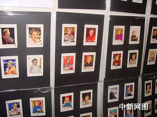 徐州撲克大王姚煥新從收藏的撲克牌中,精心挑選50余副關于女性題材的特色撲克牌并制作成40余塊展板。在巡展現(xiàn)場,記者看到,展板里有以古代女性為主題的《歷代百美圖典》、《中國歷代才女》,也有現(xiàn)代流行的青春偶像《S.H.E》、《臺灣第一美女林志玲寫真》;有中國的《巾幗英!、《宋氏三姐妹》,也有外國的《鐵娘子》、《折翅的鐵蝴蝶》;有《二戰(zhàn)魅力女郎》,也有現(xiàn)代《中國女兵》。