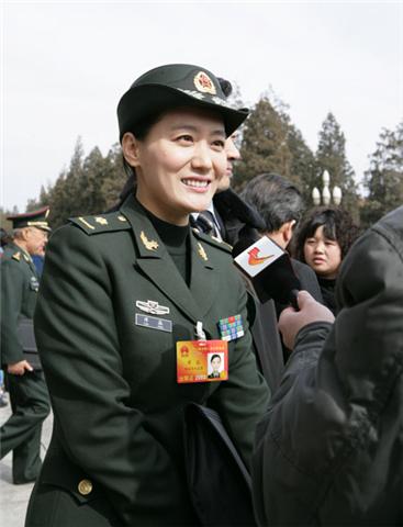 3月8日上午,參加十一屆全國人大三次會議的解放軍代表譚晶被男記者包圍采訪。 中新社發(fā) 張宇 攝