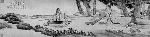 著錄于《秘殿珠林續(xù)編》,引首為乾隆題“游藝神通”四楷書。在去年保利秋拍中被上海藏家劉益謙以1.69億元拍走。這也打破了此前由徐揚《平定西域獻俘禮圖》以1.34億元創(chuàng)下的全球中國繪畫成交紀錄,并榮膺國內單件成交額最高的藝術品。