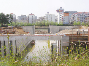 記者趕到西廣場時發(fā)現(xiàn),遺址上是一片火熱的施工景象,現(xiàn)場堆滿了各種建筑材料,幾十個工人穿梭忙碌,工地上還可以見到類似砌城墻所用的巨大條石。從廣場西邊的外秦淮河邊望去,新建的混凝土水閘幾乎東西向貫通遺址,已經(jīng)基本成形。現(xiàn)場一位工人告訴記者,這里將建一個賞心亭,水閘還將穿過馬路,連通內(nèi)外秦淮河。