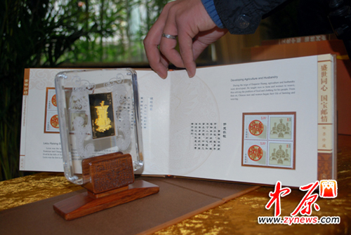 本次活動還現(xiàn)場展示了由中國郵政集團公司批準發(fā)行的《河之南》郵票珍藏冊,《國寶郵情》雙連壺。內(nèi)容涵蓋建國珍郵、中原“國寶”、貴金屬等多個方面。該系列郵票濃縮了中原文化的博大精深,彰顯中原文化在中國文明史上的核心地位。這也是鄭州市郵政局連續(xù)五年為拜祖大典奉獻的文化盛宴。