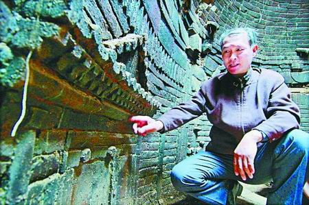 該座宋墓位于南水北調(diào)焦作段普濟(jì)路一處工地上。記者昨日到達(dá)現(xiàn)場時,南水北調(diào)焦作段施工人員正在幫助文物工作人員保護(hù)發(fā)掘現(xiàn)場。據(jù)焦作市文物工作隊古建專家趙德才介紹,圓形宋墓在焦作市所發(fā)掘的宋墓中比較罕見,這座宋墓上所雕刻的建筑結(jié)構(gòu)清晰可見,對研究宋代建筑有一定價值。