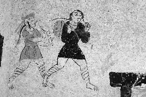 地埂坡墓群位于高臺縣河西村南3公里黑河南岸的戈壁臺地上,是河西走廊發(fā)現(xiàn)的又一處重要的魏晉時期墓葬群。該墓葬最大的“亮點(diǎn)”是:墓室內(nèi)有內(nèi)容豐富、技藝精湛的壁畫,表現(xiàn)了農(nóng)耕、畜牧、宴飲等內(nèi)容,出現(xiàn)了多個少數(shù)民族形象,這是以往河西魏晉墓中不多見的,為研究河西地區(qū)歷史、中西文化交流以及民族融合等提供了珍貴的資料。