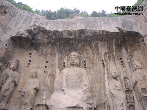 龍門石窟至今仍存有窟龕2100多個,造像10萬余尊,碑刻題記3600余品,抬頭舉目,滿眼盡是儀態(tài)萬千、美不勝收的藝術(shù)瑰寶。媒體記者應(yīng)接不暇,紛紛拍照留念。龍門石窟最有名的雕像當(dāng)屬第1280窟(奉先寺)的盧舍那大佛。盧舍那大佛通高約17米,頭部高4米,寶相莊嚴(yán),氣度閑適。當(dāng)記者凝視大佛的雙眼時,卻發(fā)現(xiàn)大佛也在俯視著你,莊嚴(yán)而不失親切,不語卻發(fā)人深省。龍門石窟越看越覺得看不夠,越看越覺得不可思議,這些佛像,迥異于我們尋常所見,形象生動,帶著一種異域的風(fēng)情,向我們展示了當(dāng)年燦爛的文化、高超的審美、精湛的技藝。