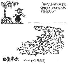 1957年,華君武推出了“人民內(nèi)部諷刺漫畫”。他針對大躍進(jìn)浮夸風(fēng)創(chuàng)作了《疲勞過度癥》,針對動(dòng)不動(dòng)給人扣大帽子創(chuàng)作了《杜甫檢討》,針對長篇空洞發(fā)言創(chuàng)作《誤人青春》,針對生造簡化字創(chuàng)作《倉頡認(rèn)字》,針對多子女創(chuàng)作《大“小家庭”》,批評相聲水平不高創(chuàng)作了《聽相聲?》等,都給讀者留下了極為深刻的印象。“內(nèi)部諷刺漫畫”在“文革”中成為“罪證”,遭到長期批判,華君武被迫擱筆10年,但”文革“后,這把”匕首“依然鋒芒犀利,創(chuàng)作出一系列批評諷刺時(shí)弊和人性弱點(diǎn)的漫畫。
