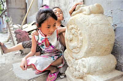 昨天下午,記者來到海淀區(qū)青龍橋街道騷子營社區(qū),石門墩就擺在李玉財(cái)家門外。石門墩高約50厘米、寬70厘米左右、厚度約20厘米,由整塊的石材雕刻而成,抱鼓上雕刻有精致的花紋。李玉財(cái)說,如果這個(gè)石門墩真是文物,他會(huì)立刻上交,“文物是國家的,要交給政府,好好保護(hù)起來”。