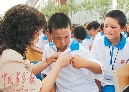今天(5日),青海省玉樹縣12歲的藏族學(xué)生更尕求占,在天津開始了自己的初中生活。接收她的天津市東麗區(qū)耀華濱海學(xué)校為共計563名玉樹學(xué)生舉行了開學(xué)典禮,他們當(dāng)中絕大多數(shù)是藏族學(xué)生。5個月前,他們的學(xué)業(yè)和生活被突如其來的地震打斷。