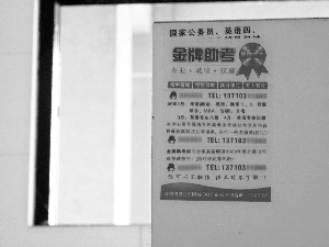 近日,廣州大部分高校均已開學(xué),同時計算機(jī)等級以及英語四六級等多項考試也被擺上眾多考生們的日程表。而就在此時,部分網(wǎng)站以及校園的公告欄,甚至是校園廁所墻上,各種惡俗小廣告也隨之現(xiàn)身,有人吹噓有各種考題及答案來源可靠,另外,出租“情侶旅店”的小廣告也悄然出現(xiàn)。記者調(diào)查發(fā)現(xiàn),絕大多數(shù)的小廣告都存在欺詐,見錢后隨即“人間蒸發(fā)”。校方提醒廣大學(xué)子,不要輕信各種有關(guān)考題出售的信息,一旦發(fā)現(xiàn)應(yīng)及時舉報,配合打擊。