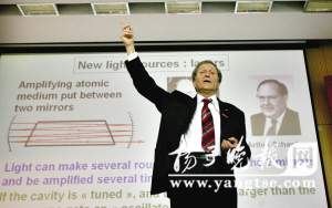 昨天,“霍尼韋爾·諾貝爾全球校園行”活動(dòng)為東南大學(xué)請(qǐng)來了重量級(jí)嘉賓——諾貝爾物理獎(jiǎng)獲得者,76歲的克勞德·科恩·坦諾奇(Claude Cohen-Tannoudji)教授。他以“光與物質(zhì)”為主題,與東大學(xué)子分享了他的個(gè)人經(jīng)歷和學(xué)術(shù)成就。在與媒體見面時(shí),科恩教授還主動(dòng)“報(bào)料”稱,他與祖籍江蘇太倉的華裔科學(xué)家、美國能源部部長朱棣文是好友。